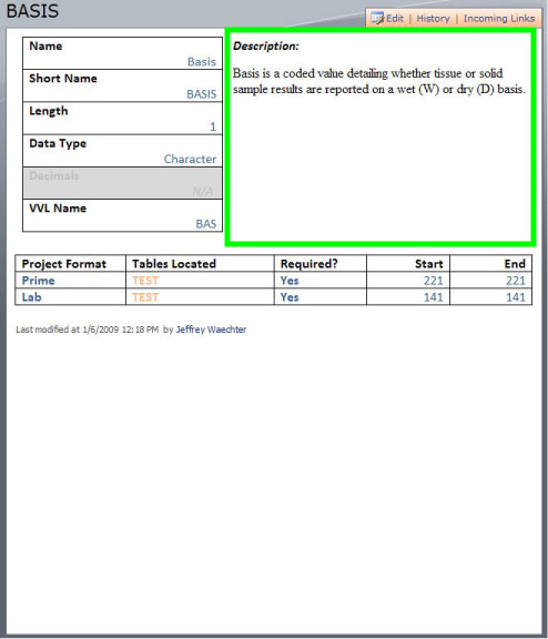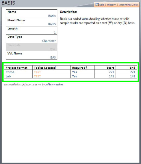 By selecting the name of any table in the the import specification section, a page will be displayed outlining information about that table. More information about the table layout can be found in the Table Descriptions section.